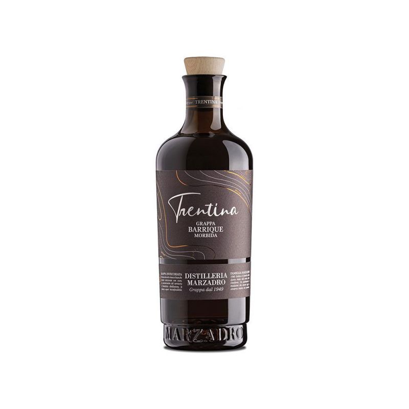 La grappa 'La Trentina' barrique morbida viene prodotta solo dalle migliori vinacce di chardonnay e moscato rigorosamente trentine accuratamente selezionate che vengono poi messe in alambicco, così da ottenere la prima grappa grezza. Questa viene fatta riposare nelle stesse botti barrique che hanno precedentemente ospitato la grappa stravecchia '18 lune'. L'affinamento prosegue per alcuni mesi, il tempo necessario affinchè il processo di osmosi gli conferisca i profumi e le sensazioni del legno.