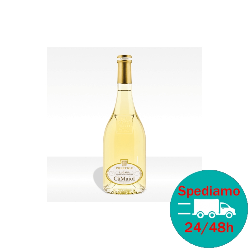 Lugana Prestige giallo dorato, dal profumo fresco e fruttato, mele verdi, lime, timo e pepe bianco. Il gusto è equilibrato e morbido.